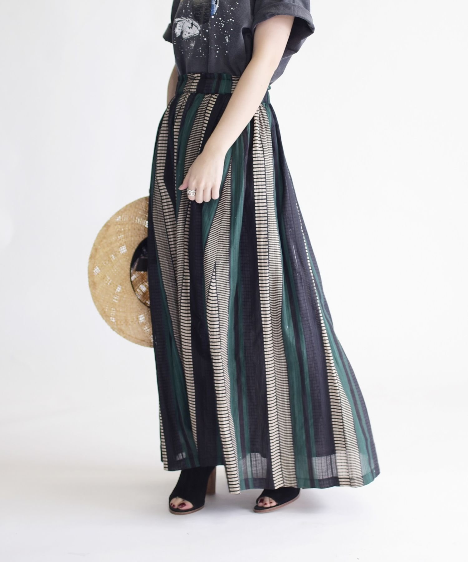 存在感のあるストライプバティックスカートを主役に、少し透け感のある涼しげなニットと、革素材の組み合わせのサンダルやバッグを合わせてキレイめなスタイルにしました!!スタッフ身長158cmニット 3 ¥11,800→¥9,086(30%off)スカート 3 ¥14,190サンダル 3 UHURUストライプスカート これからの季節にぴったりなストライプバティックスカートのご紹介! 一枚で主役になるアイテムです。 コットンを使用しているので通気性がよく、夏に向けておすすめのスカート。 デザイン たっぷりボリューム感のある大人の抜け感&色気UP! 夏にはきたい「マキシスカート」13選 9 EUCLAID/ティアードギャザーロングスカート ギャザーを寄せることで一味違った表情を見せてくれるティアードスカートは、ミリタリーカラーで代表的なカーキも女っぽくモードに仕上がり